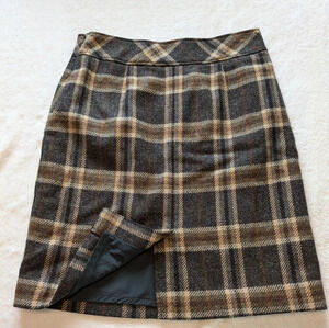L.L. Bean Brown and Beige Wool blend plaid skirt sz 10