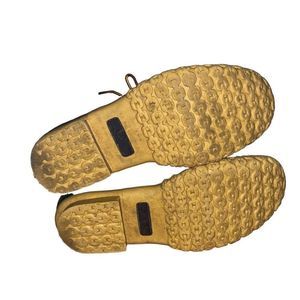 Durable winter boots. Brown leather upper. Blue rubber lower. Ideal for cold weather. Great used condition.