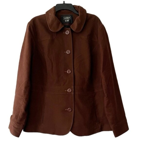 LL Bean Brushed Cotton Belted Barn Jacket Brown Size XL
