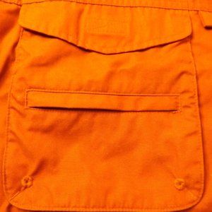 Style: Button up the front shirt with insect repellent construction (netting inside shirt to make it hard for bugs to bite). Left side front has one large pocket at the chest with two tiny pockets in front of that. There is a loop next to the pocket for hanging things from. Right front chest pocket is large with a small zipper pocket at the front and another loop next to pocket for hanging items. Buttons near elbow allow sleeve to be rolled up and buttoned into place to keep it from sliding down.
