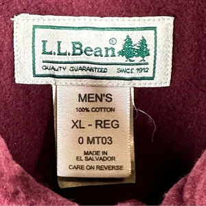 LL Bean Burgundy Heavy Weight Men's Chamois Shirt, Traditional Fit XLR
