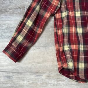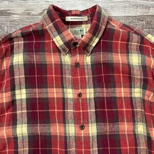 L.L. Bean Burgundy Plaid Flannel Shirt 100% Cotton Traditional Fit L