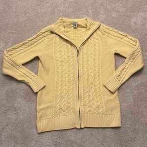 L.L. Bean Butter Yellow Cable Knit Zip Up Size M