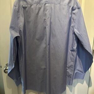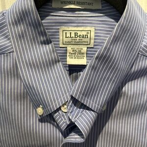 Blue and white striped L.L. Bean button-down wrinkle resistant. Armpit to armpit 22 1/2 inches top to bottom is 32 1/2 inches the sleeve length is 33 inches.