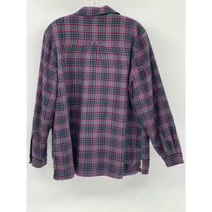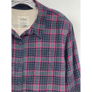 L.L. Bean Button Down Shirt Flannel Women Large Pink Green Plaid Sherpa Fleece