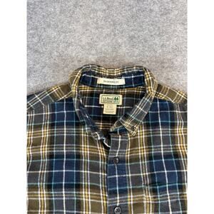 LL Bean Button Down Shirt Mens Medium Blue Plaid Traditional Fit Flannel Western