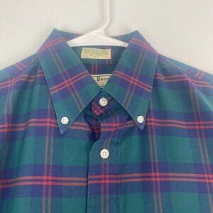 L.L Bean Button Down Shirt Mens Size 16-33 Green/Red/Blue Striped Long Sleeve Cotton Made in USA