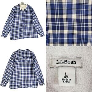 LL Bean Button Down Shirt Women’s Size Large L Plaid Blue Sherpa Lined Fleece