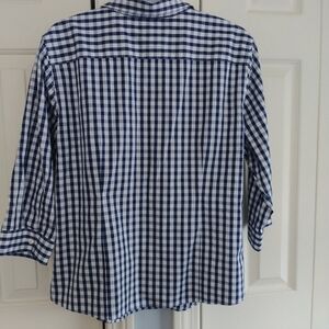 L.L. Bean Button Front Blue Plaid Oxford Shirt XL
