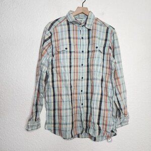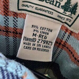 L.L. Bean Button Up Blue Plaid Cotton Linen Blend Shirt Men's Size Medium