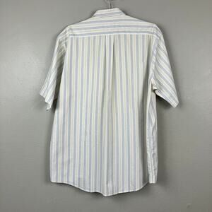 LL Bean Button Up Shirt Mens 16.5 Reg Blue Stripe Short Sleeve Wrinkle Resistant