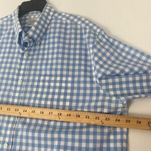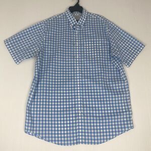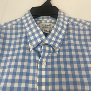 LL Bean Button Up Shirt Mens Size L Tall Blue Striped Short Sleeve 100% CottonWrinkle Resistant