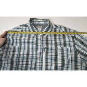 L.L Bean Button Up Shirt Plaid Short Sleeve Double Pockets Zip Men Size XXL Reg