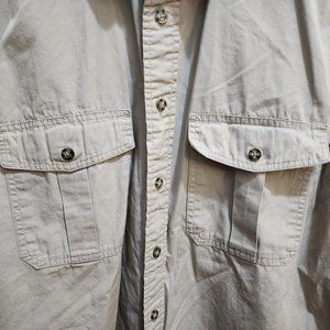 L.L Bean Buzz Off Insect Repellent Tan Short Sleeve Button Up Cotton Size M REG