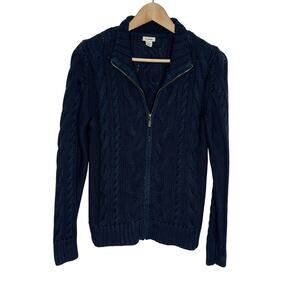 L.L. Bean Cable Knit Cardigan Sweater Womens SP Navy Full Zip Cotton Fisherman