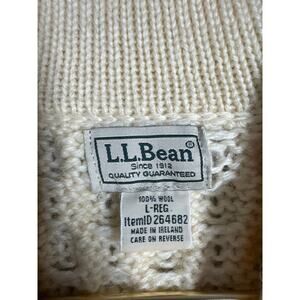 LL Bean Cable Knit Fisherman Sweater Mens Ivory Henley 100% Wool Ireland Sz L
