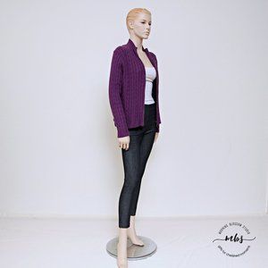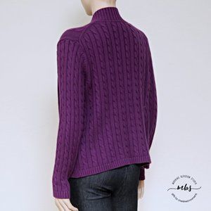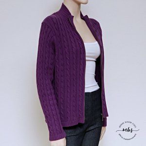 L.L. Bean Cable Knit Full Zip Cardigan Sweater Purple Women Size LP