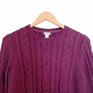 L.L. Bean Cable Knit Sweater Eggplant Fall Preppy Pullover Size SP Small Petite