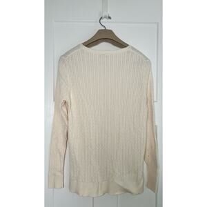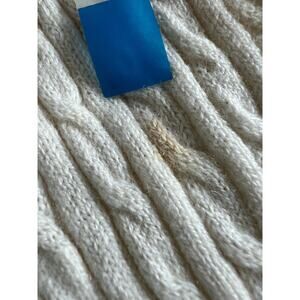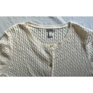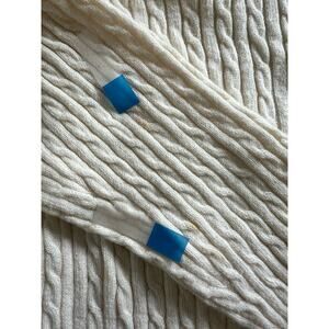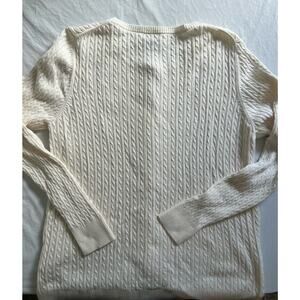 LL Bean Caable Sweater Button Up Size XL Cotton Merino Wool Off White