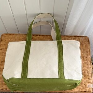 Elegant canvas tote with olive accents. Ideal for daily use. Sturdy and roomy. Lightly used and still stiff! Never washed, no embroidery. Zip top. Sold out on the L.L. Bean website. Really great used condition; see photos!