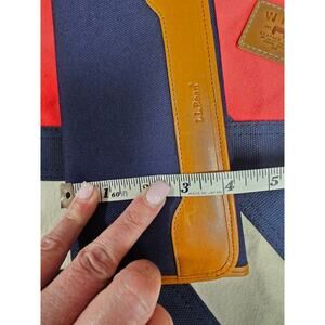LL Bean Canvas/Leather travel passport ID organizer tri fold wallet for man and woman. 8" x 4" are the measurements when closed. This wallet is in like new condition with no signs of wear. This is a perfect travel companion to keep all your tickets and cards in one safe place.