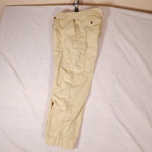 LL Bean Cargo Pants Mens 35x32 (~32x28.5) 100% Cotton Light Yellow RUNS SMALL