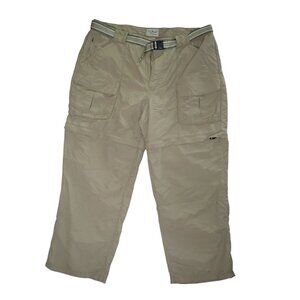 L.L Bean Cargo Pants Mens L Convertible Khaki Tan Nylon Mesh Brief Lining & belt