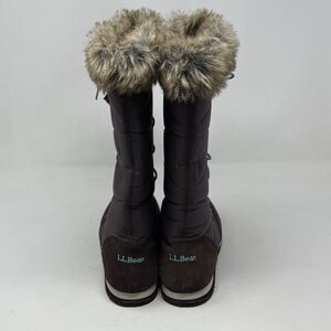 LL Bean Carrabassett Snow Boots Women 8 Brown Fur Trim Insulated Winter Tall