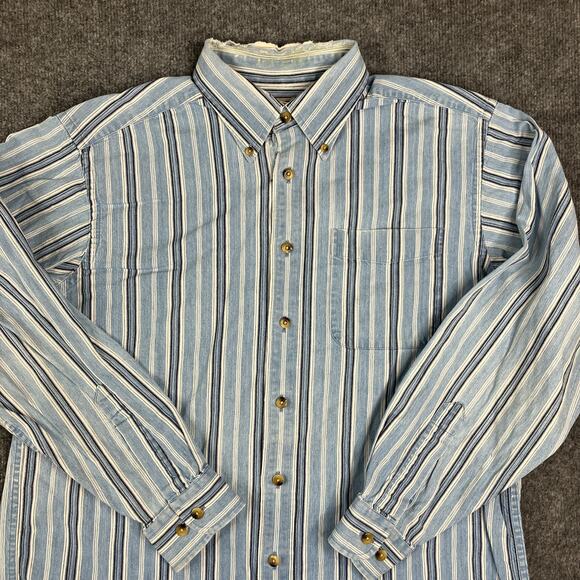 LL Bean Casual Button Shirt Mens Size M Blue White Striped Long Sleeve Cotton