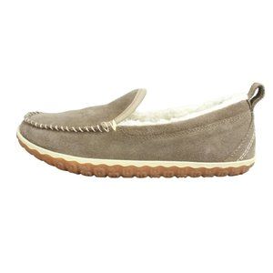 LL Bean Cement Suede Fleece Lined Mountain Moccasin Slippers Size 9 M