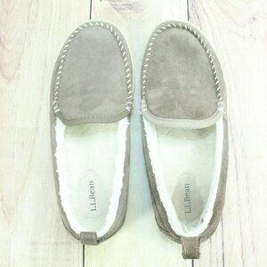 LL Bean Cement Suede Slip On Fleece Lined Mountain Moccasin Slippers Size 8 M