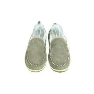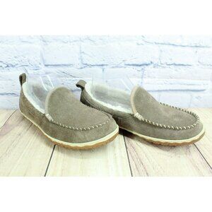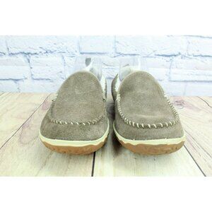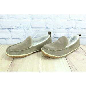 LL Bean Cement Suede Slip-On Fleece Lined Mountain Moccasin Slippers Size 8 M