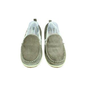 LL Bean Cement Suede Slip-On Fleece Lined Mountain Moccasin Slippers Size 9 M