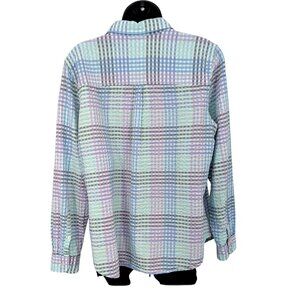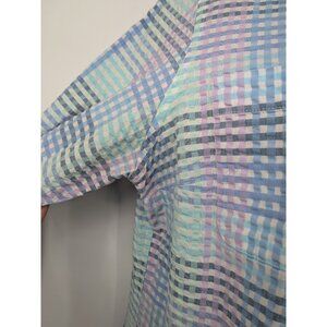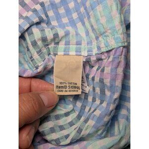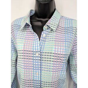 L.L. Bean Check Plaid Women Button Up Shirt L Vacation Seersucker Coastal Retro