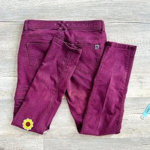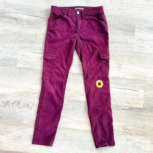 PLEASE NOTE: these pants are preowned and do have some cosmetic flaws. There is a tear on the left knee that has been mended with a patch. Also there is discoloration on the back left left. See pics for details.