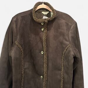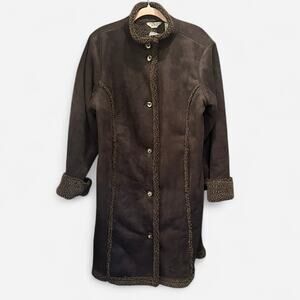 L.L. Bean Chocolate Brown Faux Suede and Shearling Coat Classic Effortless Boho