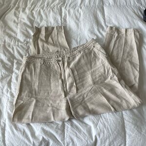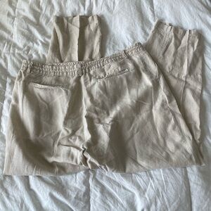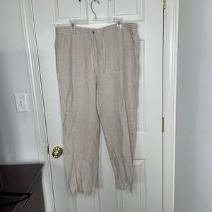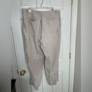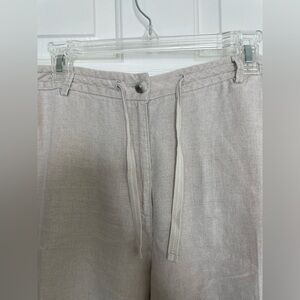 L.L. Bean Classic Fit 100% linen beige elastic tie waist pants | 18