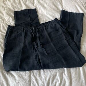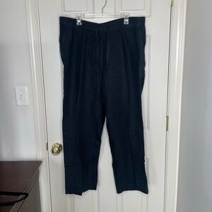 L.L. Bean Classic Fit 100% linen black elastic tie waist pants | 18