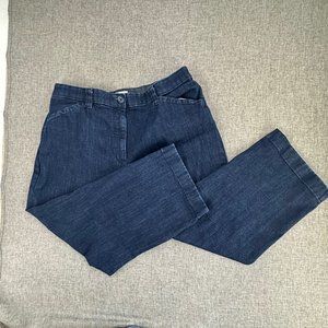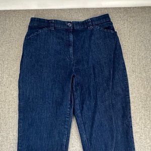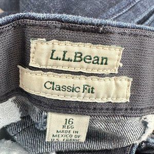 L.L. Bean Classic Fit Cropped Jeans 16 Reg Elastic Waist Dark Blue Cotton Spande
