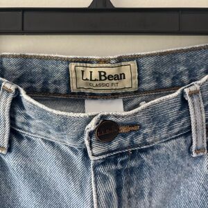 L.L. Bean Classic Fit Denim Jean Shorts Raw Hem Long Inseam High Rise Dad Fit