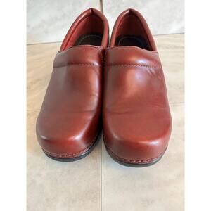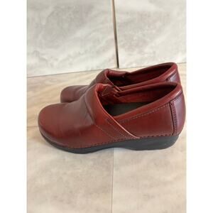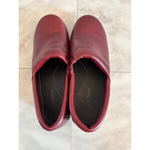 LL Bean Classic Red Leather Slip-Ons Nursing Clogs 301352 Womens Size 7.5B