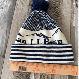 L.L. Bean Classic Winter Beanie Pom Hat One Size Mountain Scene Cozy Unisex 90s
