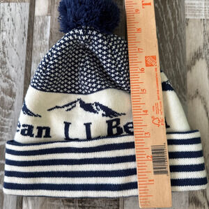 L.L. Bean Classic Winter Beanie Hat One Size Mountain Scene Unisex Blue Cream