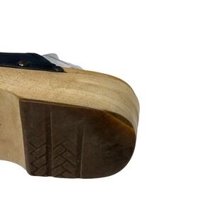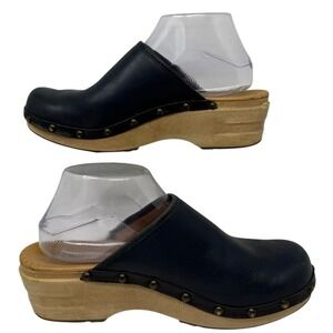 LL Bean Clogs Womens 8.5 Dark Blue Studded Leather Casual Nordic Faux Wood