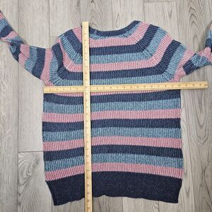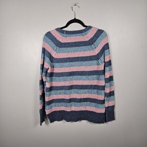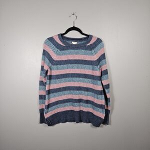LL Bean Coastal Cotton Knit Sweater Pink Blue Striped Pullover Crew Neck Medium