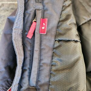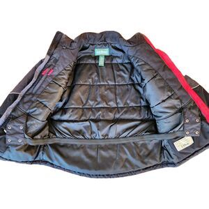 L.L.Bean Coat Youth Kids Size L ( Large 14-16 ) Black And Red Winter Jacket Full Zip Up Closure With Snap Button Zipper Cover Has Arm Pit Ventilation Zippers, Embroidered Brand Spell Out In Front On Lower Hem Area, Also Has Thinsulate Insulation For Warmth, Has Adjustable Hook And Loop Cuffs, Many Pockets Including Inside Pocket For Goggle Storage, Button Shut Elastic Waistband To Keep Out Snow, Inside Pocket For Corded Headphones To Pass Through. Colorblock Thinsulate Embroidered Snow Ski Snowboarding Hiking Camping Style.