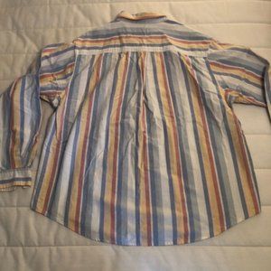 This womens L.L. Bena collared multicolored striped long sleeve button down is a size LG. It is made out of 100% cotton and is 29 inches in length with a pit to pit measurement of 23 1/2 inches. This button down is in great condition with rips, tears or stains.