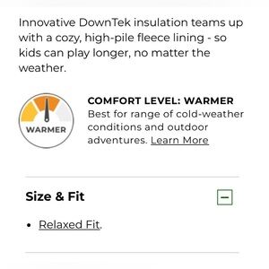 Downtek. 650 fill down. Fleece lining. Removable hood. Appears that it was worn just a few times. Still on LL Bean site. Water repellent. Zip front. Zip pockets.