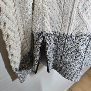 Pullover cable knit tunic sweater. Features open neckline, longer length and stylish side zips. seasons than traditional wool.