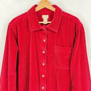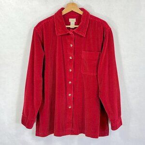 L.L. Bean Comfort Corduroy Relaxed Button Up Shirt Grandma Core Shacket Red XL